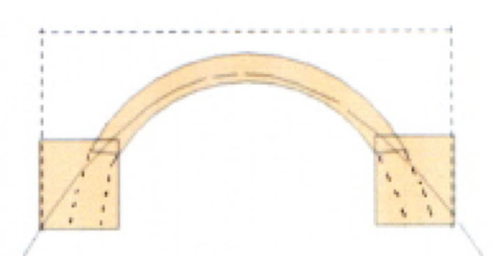 Arches come in all shapes and sizes but this rule generally applies. More often than not it is the skilful use of abutments that assures the stability, and this is especially the case with flat segmental and elliptical arches. Flat arches align better with catenary curves.