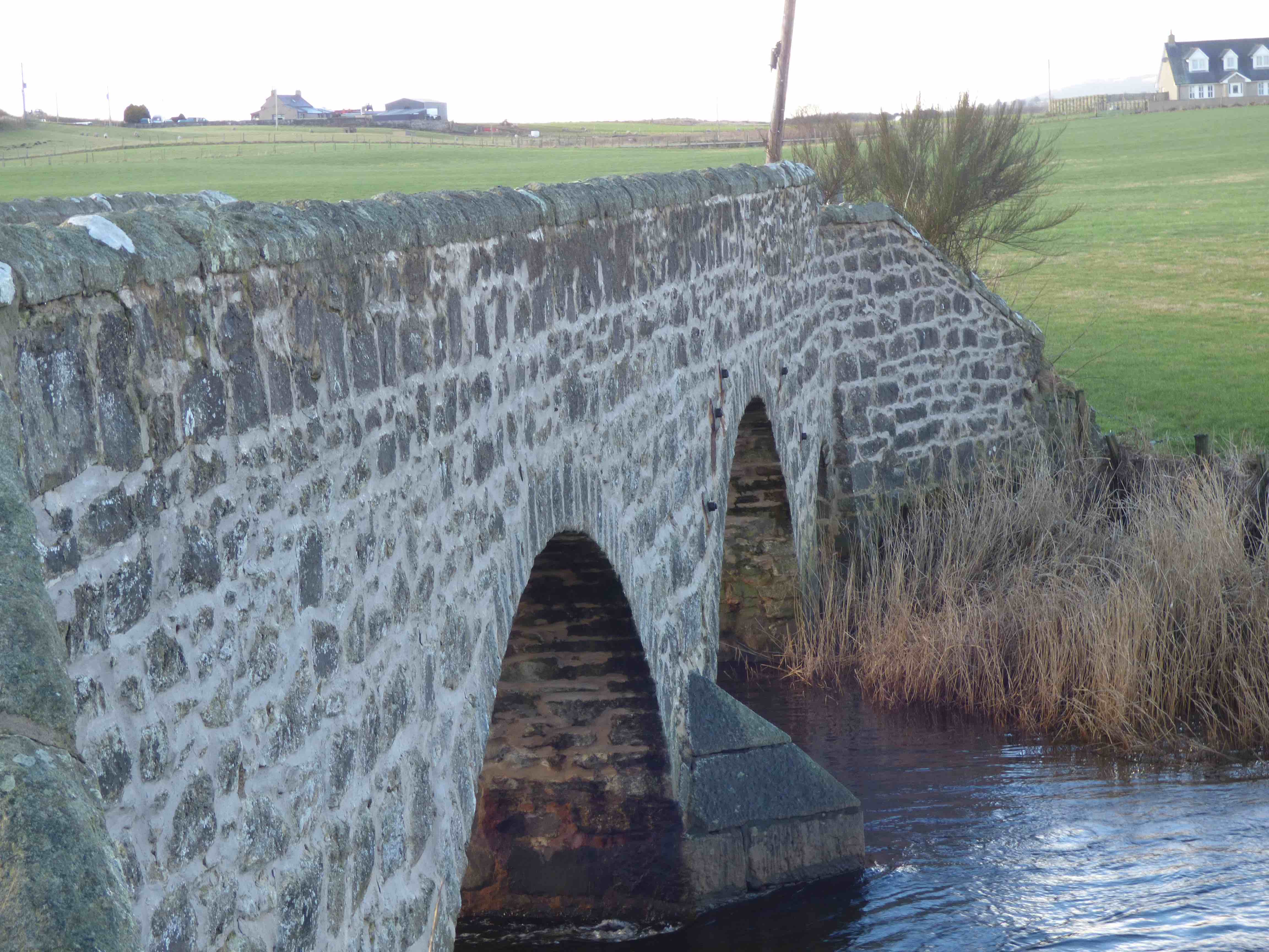 History: Located accurately by Macfarlane(c.1720): built of wood. Replaced in stone in 1723. Located at the north end of Castle Cairnbuilg Estate (13th century). Floods destroyed the bridge in 1754. There was a Philorth Bridge railway-halt on the St Combs line and a Philorth Bridge airfield in the 1940s. The Laird at Cairnbuilg informed me that the burn was originally 'The Orth' and that the 'Phil' was a pool some distance upstream, where Vikings were reputed to have berthed their long boats.