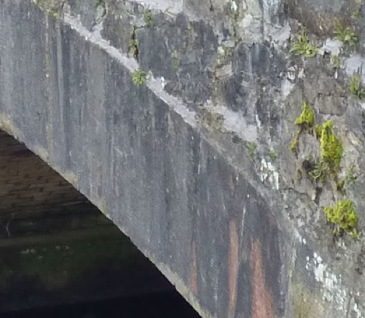 The voussoirs on the earlier rubble bridges had non-radial joints: i.e.,they were not in line with the radius of the circle. Carrbridge (1717), is a good example. With the photo is a limited quality sketch photo of the same bridge in which an attempt has been made to demonstrate this. Each voussoir seems at a completely independent and unrelated angle relative to the central